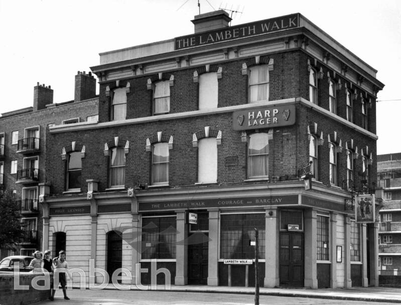 The LAMBETH WALK pub is at the junction with Lambeth Road. The pub dates back to the early 19th century and was known as the MASONS ARMS. It was rebuilt c.1890 and renamed in 1951, but closed c.2010 and has since been converted into apartments.
