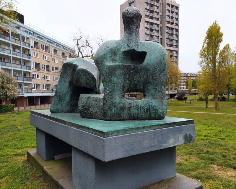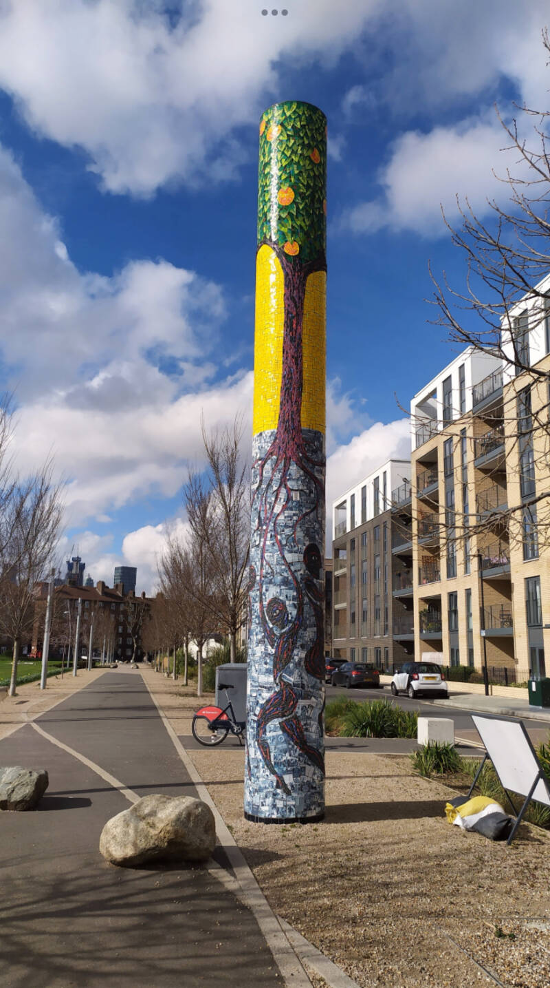 It now stands by one of the park entrances on the Kennington Road. Over the years the cross on the top was vandalised. The story is that it was bomb damaged in WW2, the bowl was removed and used elsewhere as a jardinière, so it ceased to be a fountain, the sculpture was lost to vandalism in 1981. It was used as air rifle target practice from the Kennington Park Estate! There are some rather botched concrete repairs and specialists have advised that cleaning might do more harm than good.