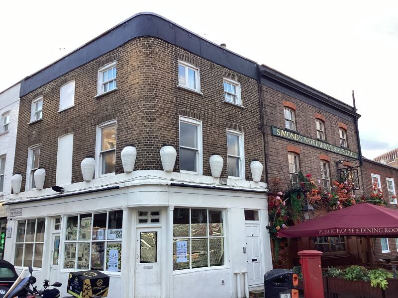 Named after the grocer’s shop that used to occupy one of the houses in the 19thc.