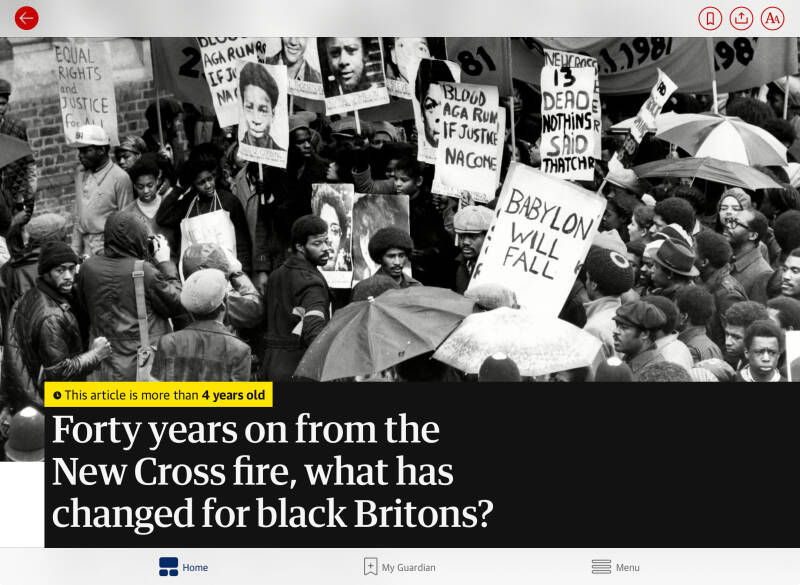 January 1981. 14 deaths in an arson attack against a house, during a party. The police investigation was very inadequate, ending in verdict of accident.