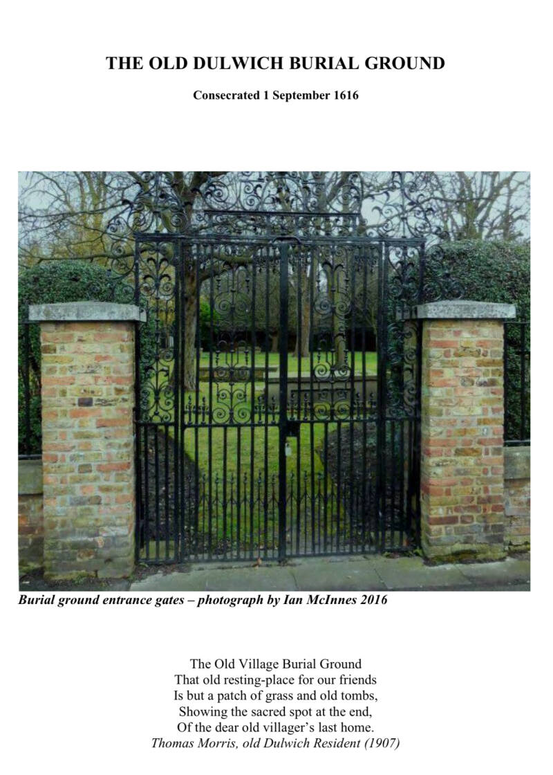 The almspeople (6 brothers and 6 sisters) and the schoolchildren (12 scholars) had to come from the 3 London parishes with which ALLEYN had connections -ST.BOTOLPH, (birthplace) ST.GILES MIDDLESEX (site of the Fortune Theatre), ST.SAVIOUR (his residence and businesses)- and from ST.GILES, CAMBERWELL, of which DULWICH was part, even if it did not become a parish on its own right until late in the 19th c.