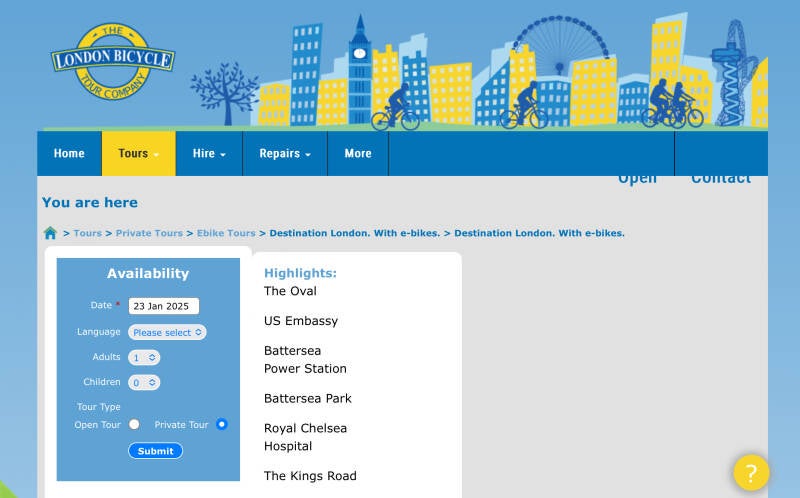 You can book now!: https://www.londonbicycle.com/tours/private-tours/ebike-tours/destination-london-e-bikes